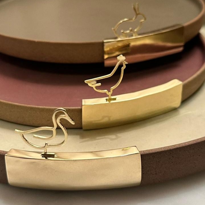 O barro, o oleiro, os pigmentos, emoções, metal e design. a coleção dispar vem da mistura desses elementos, onde traz realeza à simplicidade que o barro representa, sendo talvez a arte mais antiga do mundo. misturas sem seguir tendências. como se o metal brotasse do barro já transformado, na cerâmica foram nascendo as hastes para os copos e xícaras, os clips para pires e pratos, as molduras para pratos trazendo a riqueza de Minas para a mesa uma coleção que brotou da terra. uma cerâmica jóia. todas as peças são feitas sob medida por um ourives, fundir, recozer, laminar, cortar, serrar, limar, lixar, soldar e polir, não necessariamente nessa ordem. cada uma delas passa por todos esses processos tornando tudo muito mais especial.