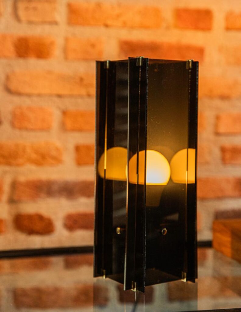 Coleção onde o entorno passa a ser observado com mais atenção, mistura do vidro com metal e madeira. Muito especial.