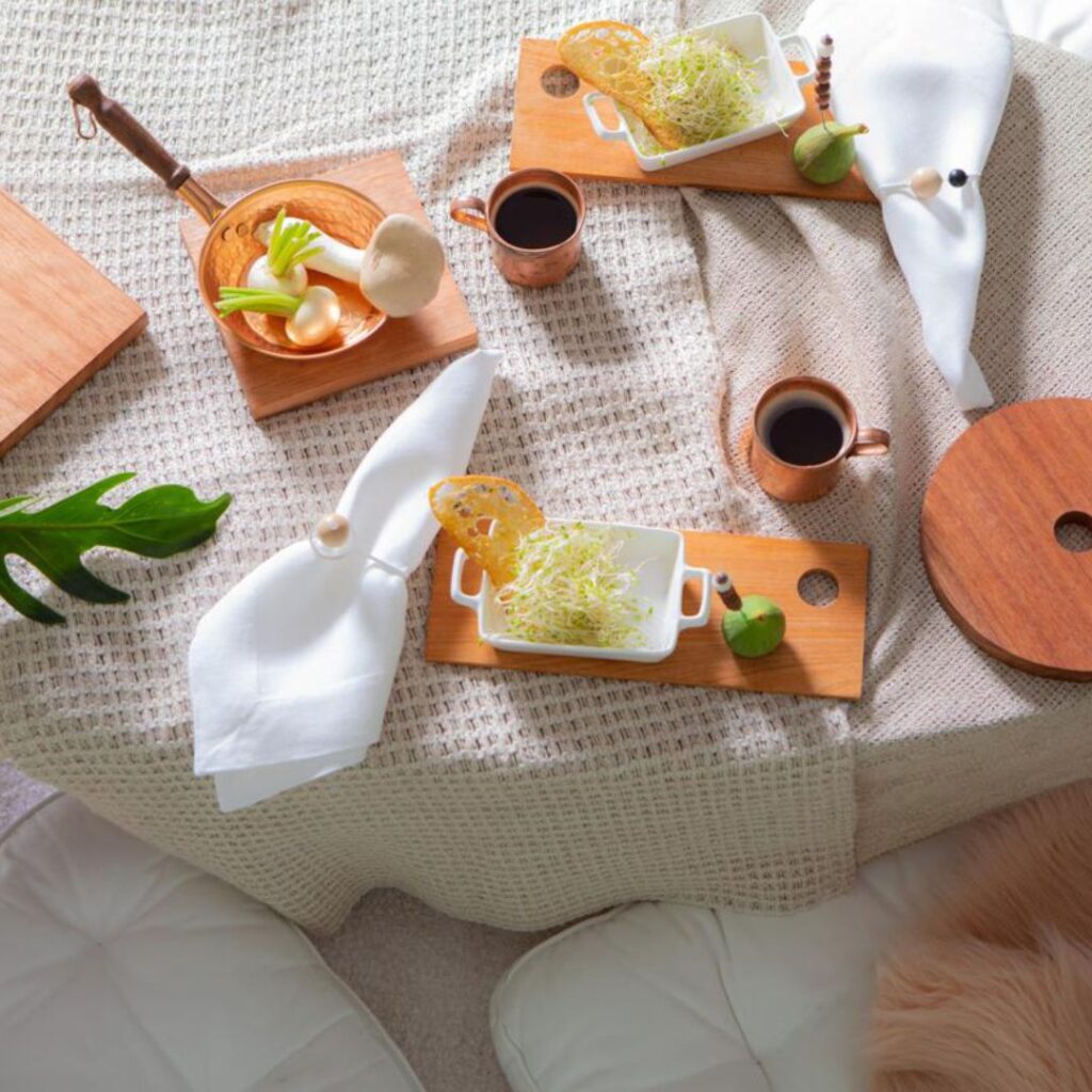 Coleção que traz uma maior valorização dos momentos do cotidiano, o moderno aconchegante. Primeiro passo em pequenas mesas laterais de madeira.
